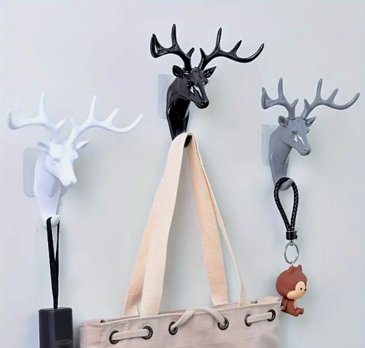 UrbanCove Co . - Deer Head Wall Hanger - 3 Different Colors - Hole-Free Hanging, Self-Adhesive, Strong Load-Carrying Capacity