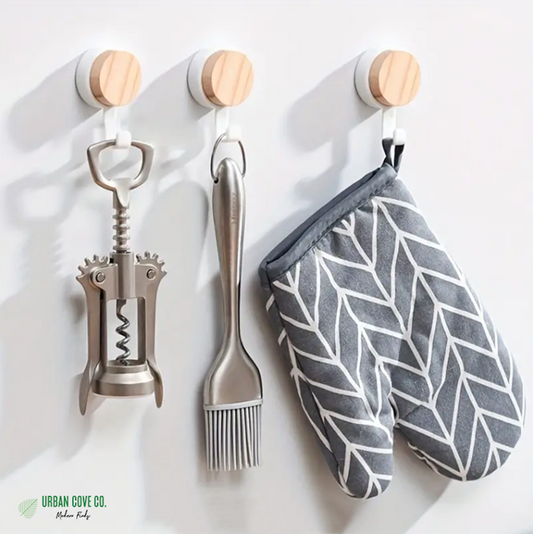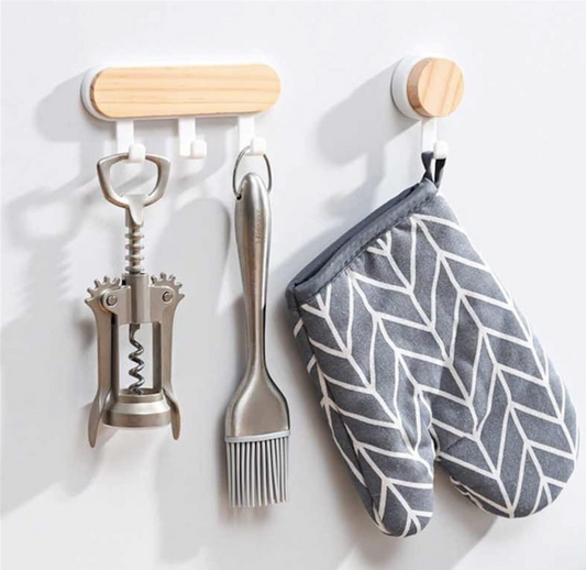 UrbanCove Co. - Multi-Purpose Wooden / Plastic 3-Piece Hook / Hanger, Kitchen Hook - Strong Self-Adhesive (1 Piece)